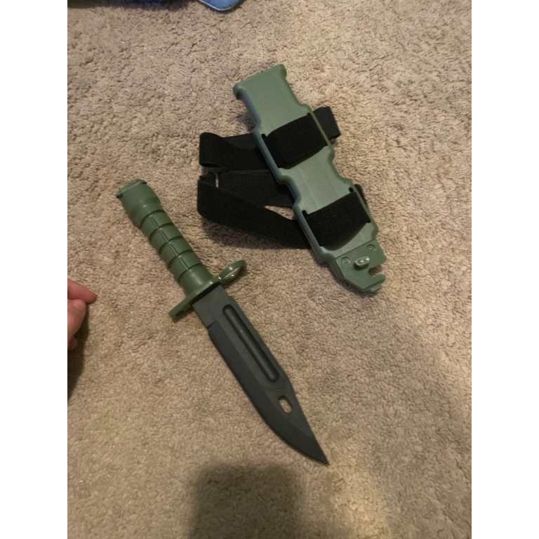 This M9 Dagger Model is crafted from high-quality rubber, making it ideal for military training, CS games, and army fan collections. Lightweight and durable, it offers a realistic look without the risk, perfect for outdoor activities and tactical scenarios. Comes with a plastic holster for easy carry.