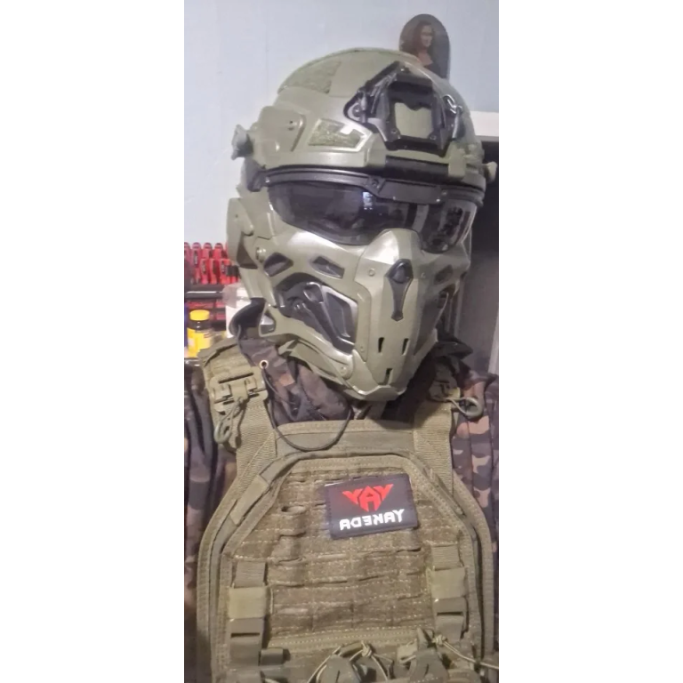 The Airsoft Tactical Full Face Helmet offers robust protection with its durable ABS and nylon construction. Equipped with a built-in communication headset and anti-fog fan, this helmet ensures clear communication and visibility in any tactical scenario. Ideal for airsoft, paintball, or cosplay, it comes in multiple colors to match your gear. Suitable for head circumferences between 52-62CM.