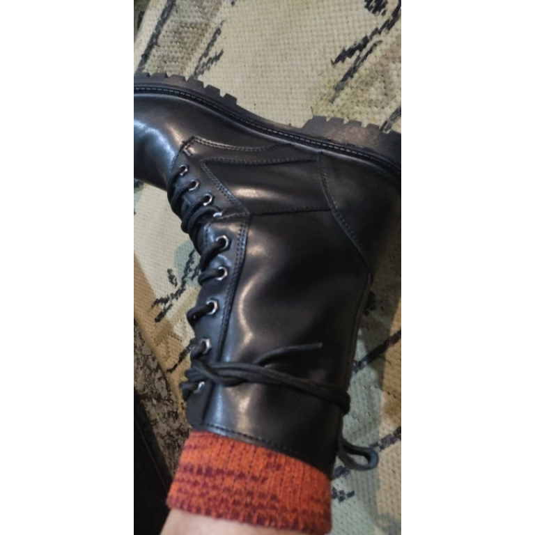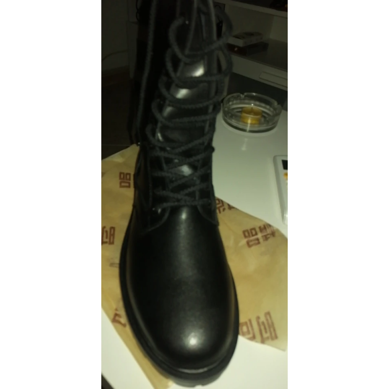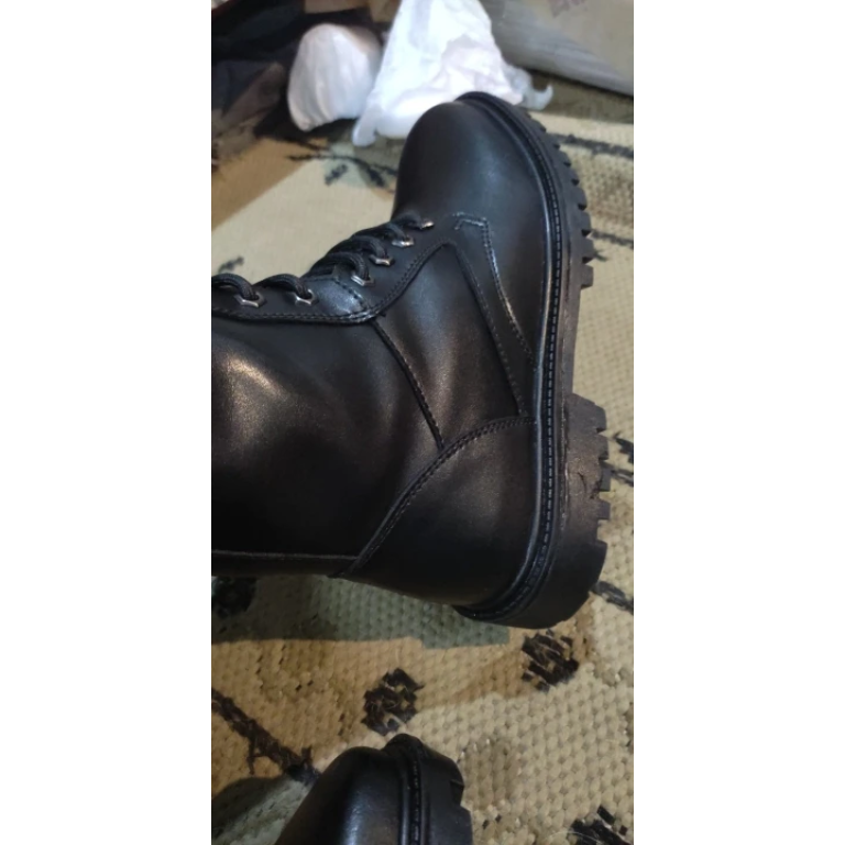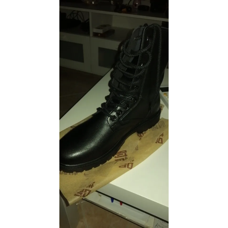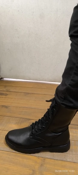 Designed for rugged outdoor activities, these black leather combat boots are perfect for winter conditions. The genuine cow leather upper and plush lining provide warmth and comfort, while the rubber outsole ensures excellent traction on various terrains. Ideal for hiking, camping, or military use, these boots combine functionality with a classic style.