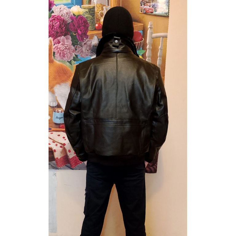 Stay warm and stylish with this Flight Jacket B3. Ideal for autumn and winter, its thick cow leather and detachable woolen collar make it perfect for daily use. The solid black color and moto & biker style add a rugged touch to your wardrobe.