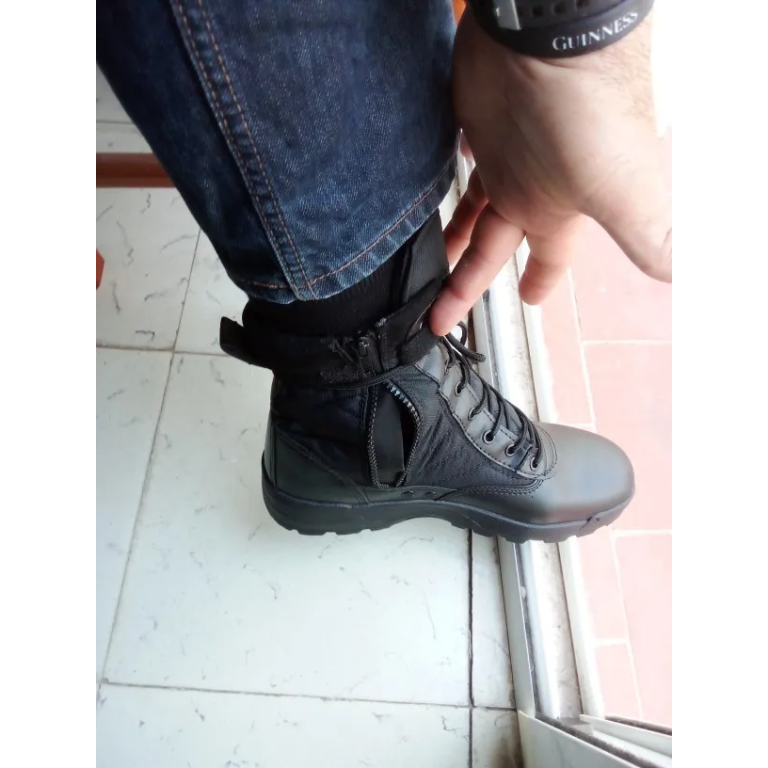 Designed for the rugged outdoors, these tactical boots are perfect for spring and autumn excursions. Featuring a secure zipper closure and made from split leather, they provide comfort and protection on various terrains. Ideal for hiking, camping, or professional use, they come in versatile colors to match your gear.
