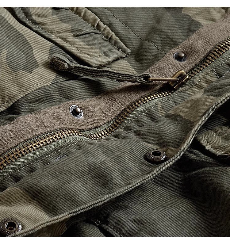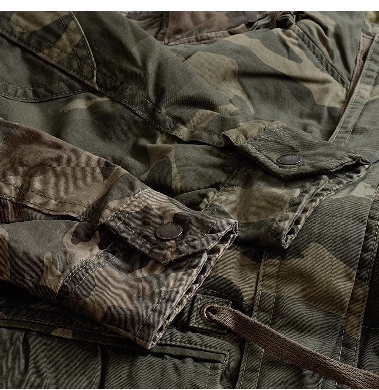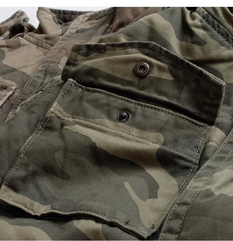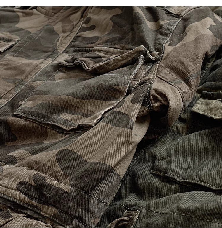 Experience the perfect blend of style and functionality with the M65 winter field jacket. Ideal for autumn and winter trips, this hooded jacket features multiple pockets for convenience. Its durable cotton and polyester fabric ensures warmth and comfort, making it suitable for outdoor adventures in chilly weather. Available in a classic camouflage pattern, it effortlessly complements any rugged look.