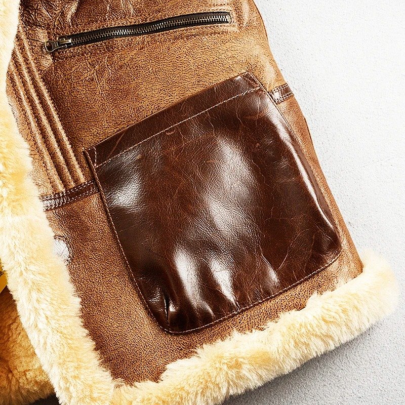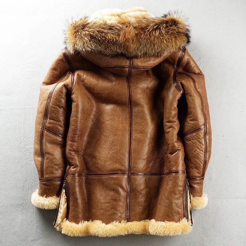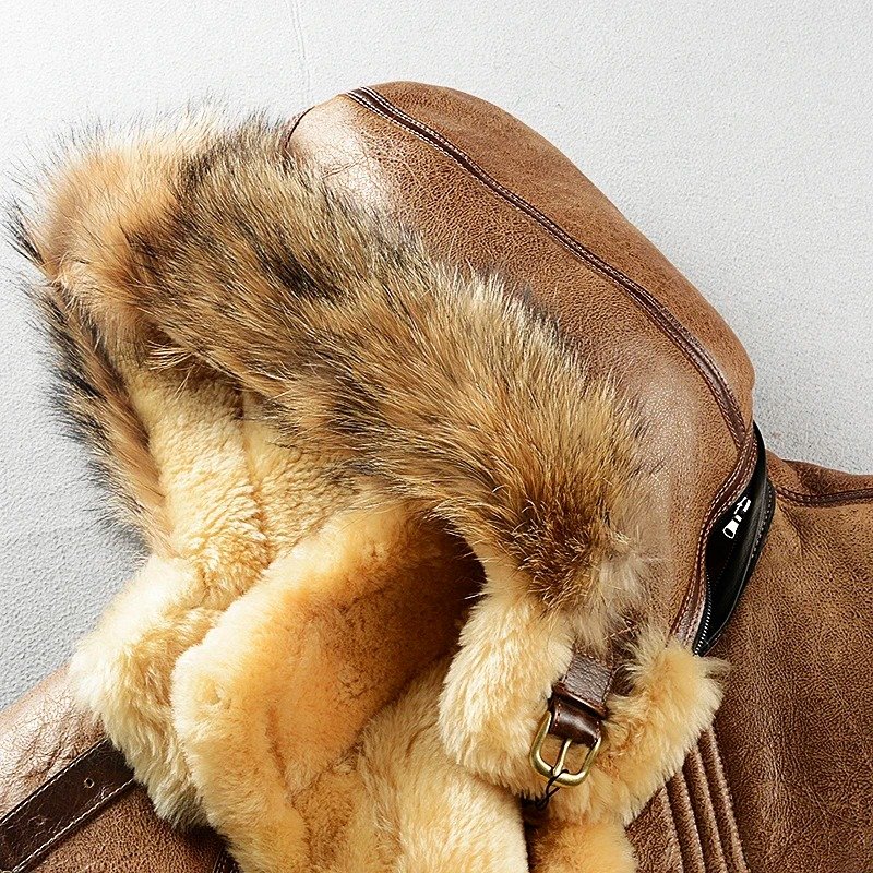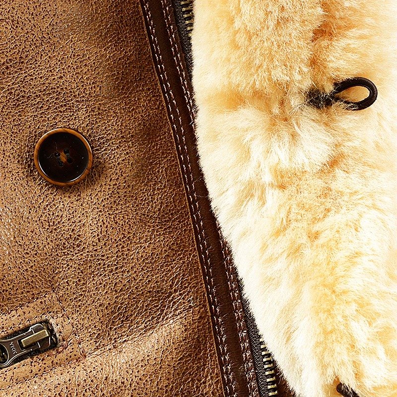 Embrace the winter season with this men’s military-style sheepskin coat. Ideal for casual outings, its wool lining and fur accents ensure maximum warmth. The detachable hood and turn-down collar add versatility, while the solid pattern and zipper closure provide a sleek look. Perfect for cold weather adventures.