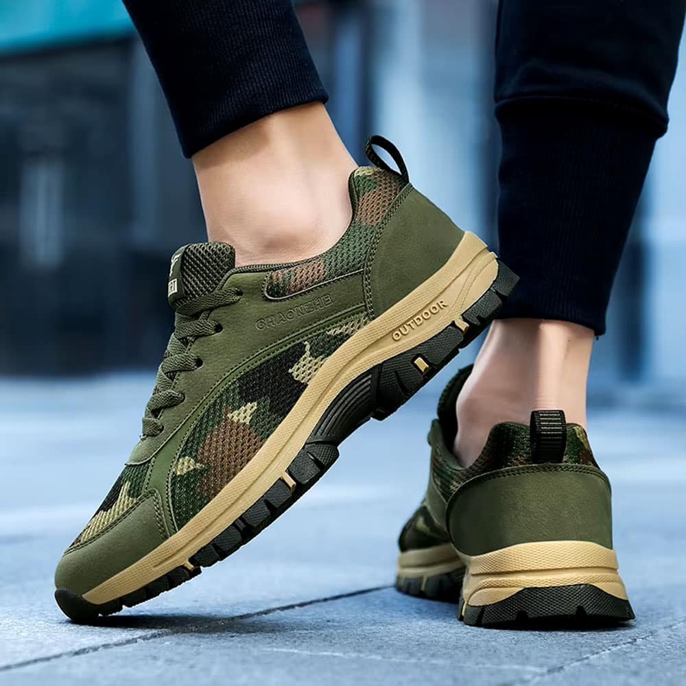 Conquer any terrain with our Military Camo Training Shoes, designed for the elite. The breathable mesh keeps your feet cool, while the EVA insole ensures comfort during intense hikes. Perfect for spring adventures, these shoes offer a tactical advantage with their durable TPR outsole. Elevate your outdoor experience now.