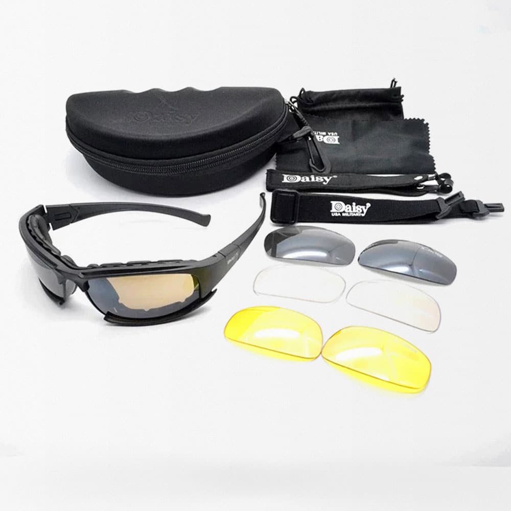 Experience unmatched clarity and protection with our Military Polarized Eyewear featuring 4 interchangeable lenses. Ideal for hunting, shooting, and hiking, these glasses provide UV protection and anti-glare capabilities. The black camo design ensures you stay stealthy in any environment, while the durable construction withstands the rigors of outdoor activities. Perfect for both men and women.