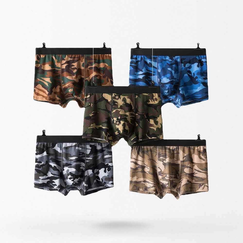Designed for men who need reliable support during intense activities, these cotton boxer shorts feature a camouflage pattern ideal for outdoor adventures. Perfect for all seasons, they offer breathability and comfort whether you’re hiking, camping, or on a mission. Available in various shades of green and brown.