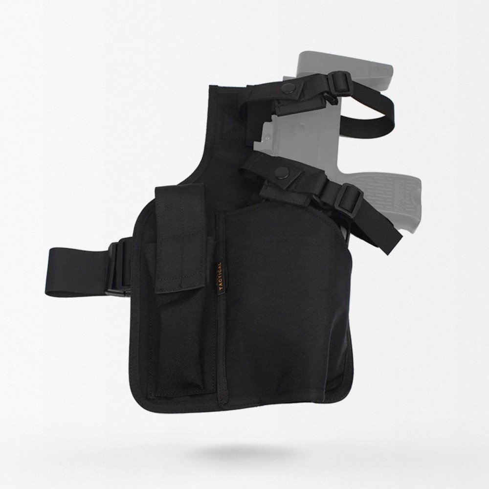 Experience unmatched convenience with the MP7 drop leg holster, crafted from durable 1000D nylon. This holster features a fully adjustable leg strap with a quick-detach buckle and an integrated magazine pouch, ensuring your gear is always within reach. Perfect for tactical operations, it attaches seamlessly to most duty belts, accommodating MP7 and similar-sized airsoft SMGs.