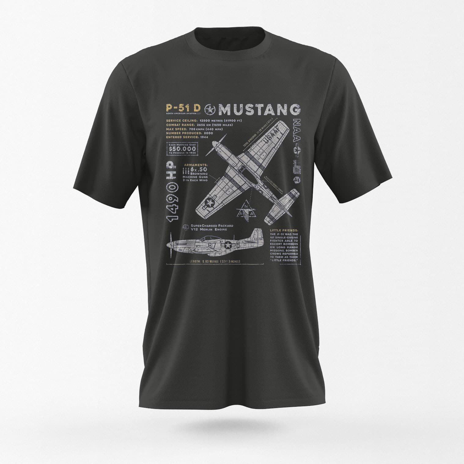 Celebrate classic aviation with our P-51 Mustang T-shirt. This shirt pays tribute to the iconic World War II fighter, showcasing your passion for vintage aircraft. Wear it with pride and honor the history of aviation excellence.