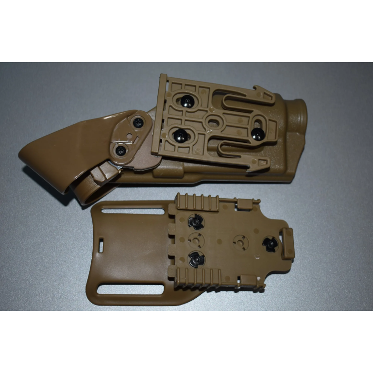 Enhance your tactical readiness with the QLS holster system, designed for right-hand use and crafted from durable polymer. Its paddle carry platform ensures secure attachment, while the side release buckle and elastic comfort allow for swift movements. Available in black, green, and tan, this holster system is perfect for versatile field operations.