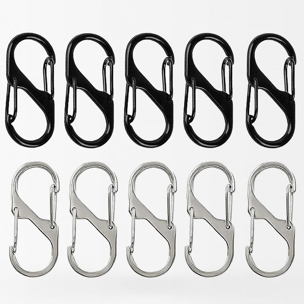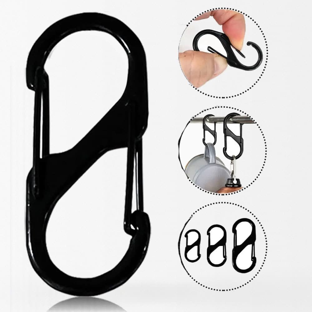 Enhance your gear with our S hook double carabiner clips, crafted from durable zinc alloy for reliable performance. Perfect for securing zippers or attaching essentials to backpacks, these clips offer quick, anti-theft locking. With three sizes available, adapt to any scenario effortlessly. Ideal for outdoor enthusiasts and everyday use.