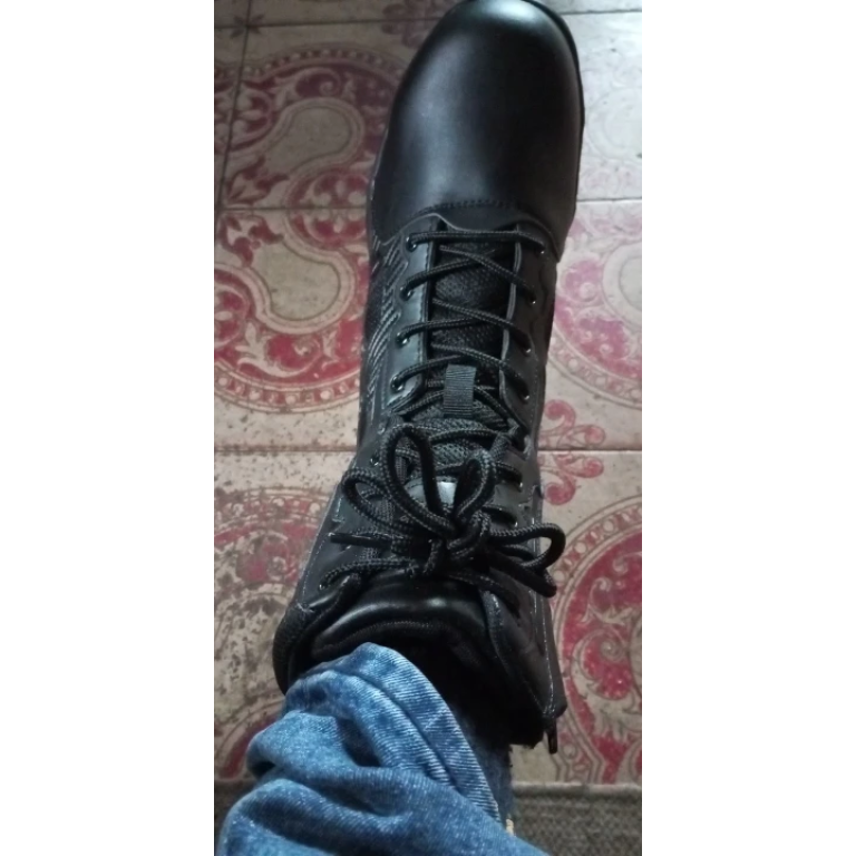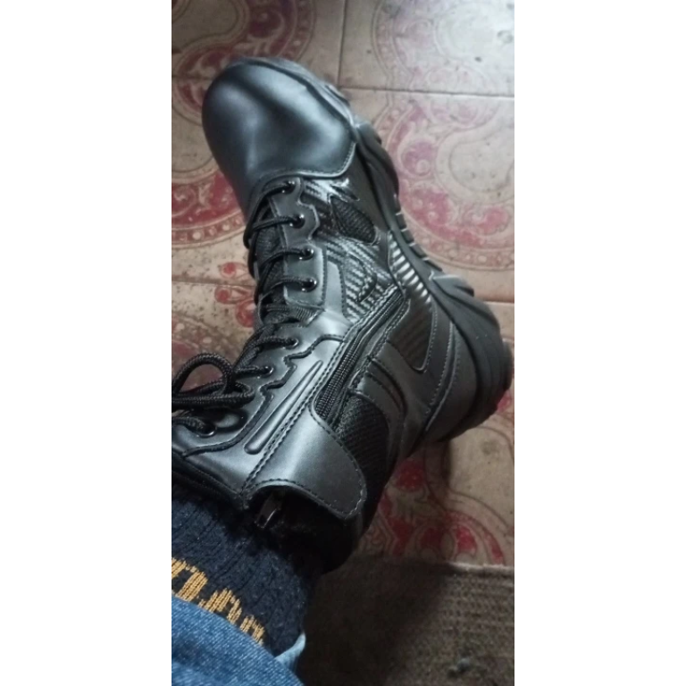 Designed for the rugged outdoors, these tactical boots are perfect for winter activities, providing essential warmth and protection. The slip-resistant rubber outsole ensures stability on various terrains, while the safety toe adds an extra layer of defense. Available in classic black, they blend functionality with a sleek look, making them ideal for both professionals and outdoor enthusiasts.