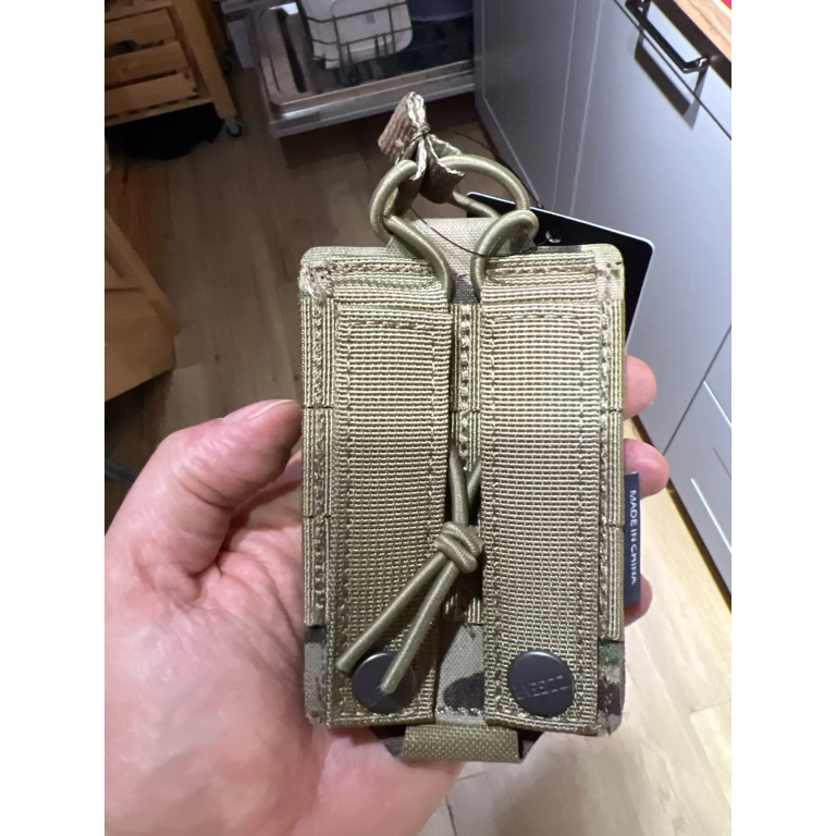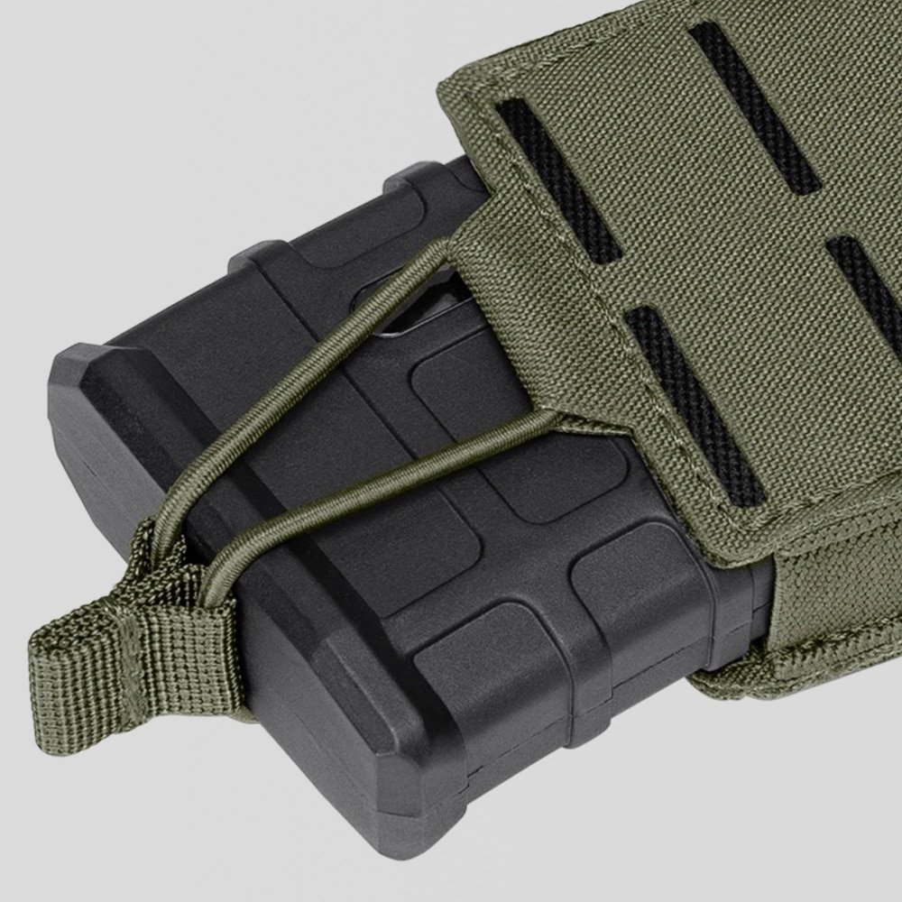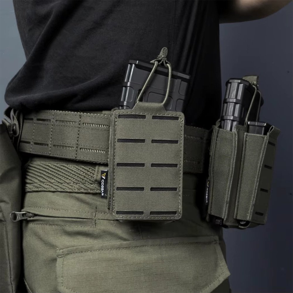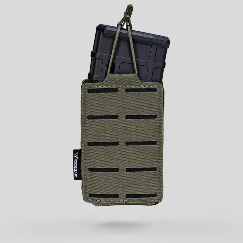 The Single Laser Cut Magazine Pouch by IDOGEAR is crafted from high-quality nylon, ensuring durability and reliability in the field. Designed to securely hold a 5.56 mag, its lightweight, low-profile design features elastic side adaptability and a bungee cord for extra security. Compatible with MOLLE platforms, it’s available in multiple tactical colors for seamless integration into your gear.