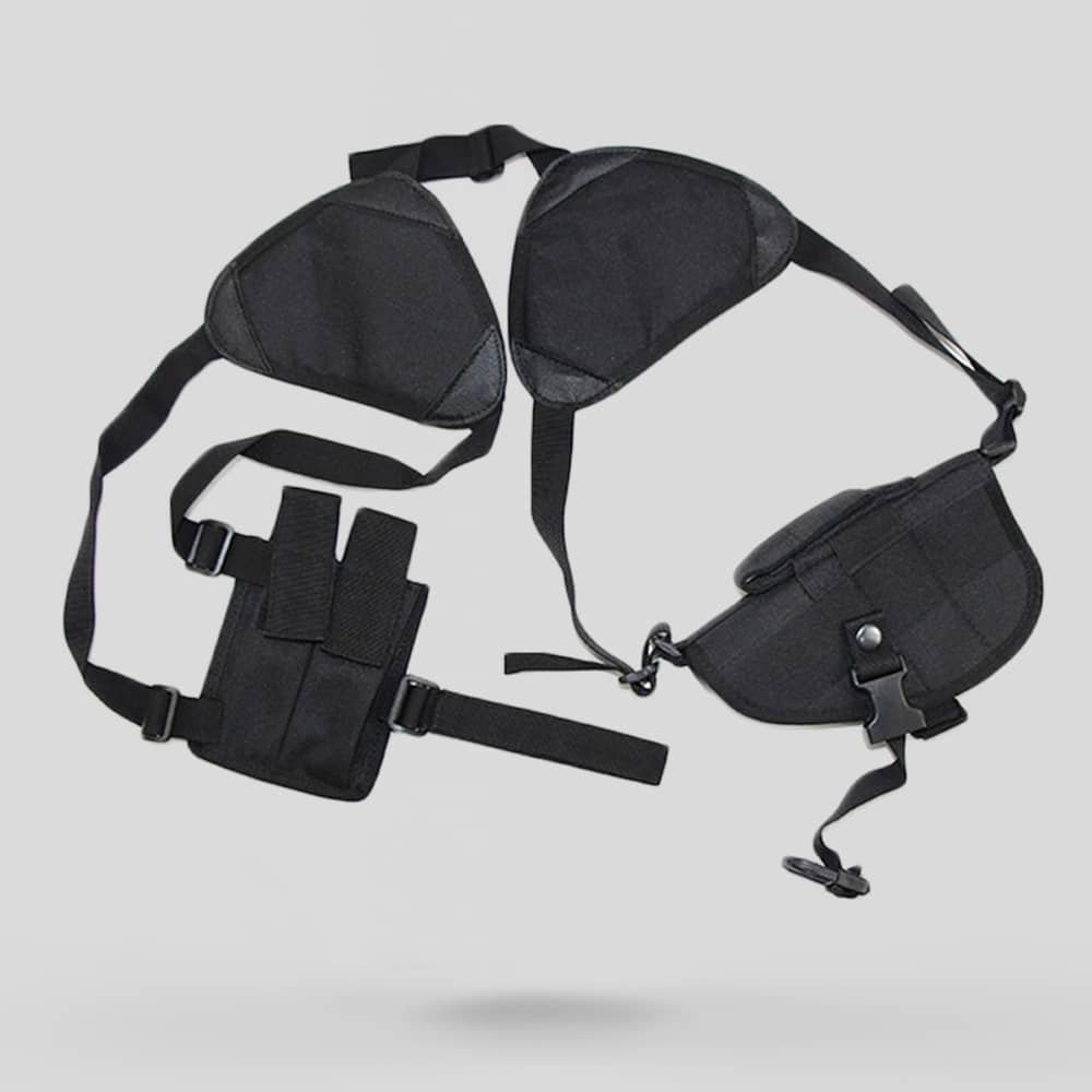 Enhance your tactical gear with this top-quality nylon shoulder holster, designed for Glock, Beretta, SIG, and more. Adjustable for a secure fit, it includes a spare holster for magazines or flashlights. Available in multiple colors, this durable and lightweight holster is perfect for field operations or airsoft enthusiasts.