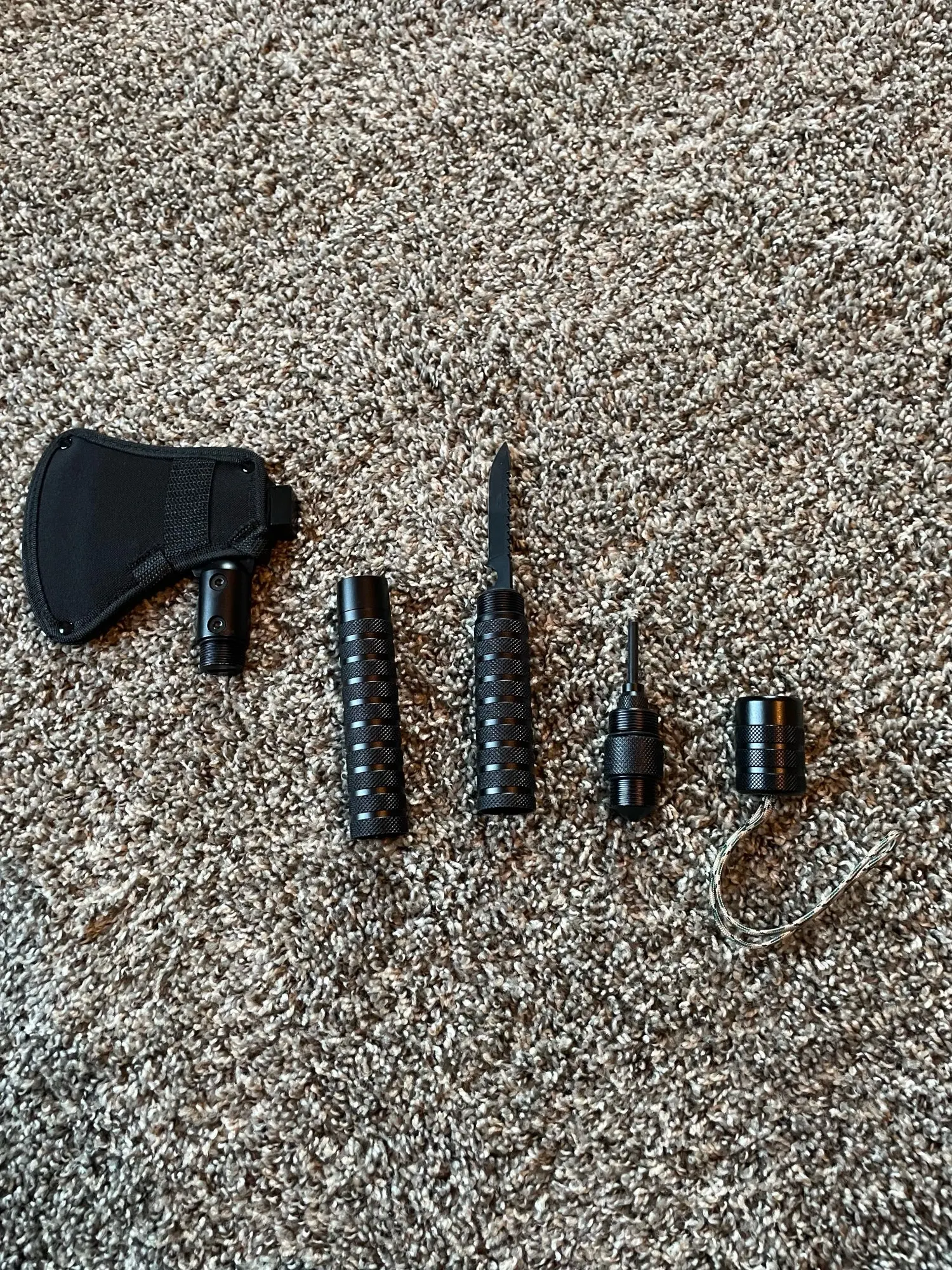 - Multi-tool combo: Includes saw blade, small knife, survival whistle, compass, and magnalium flint.