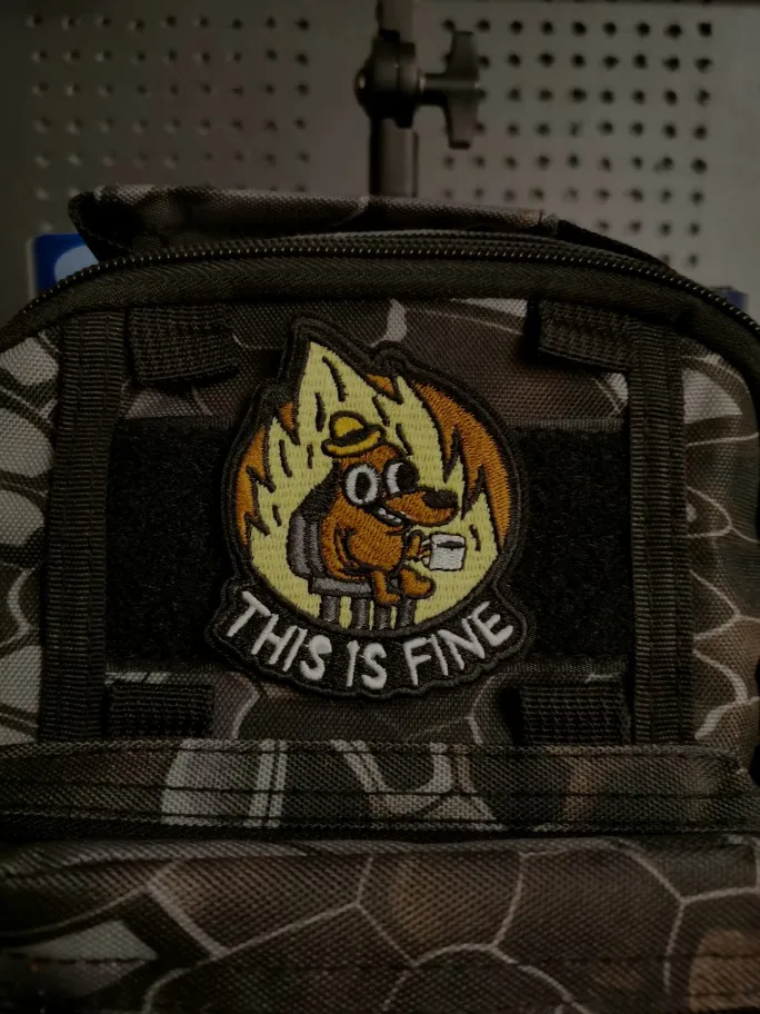 Add a touch of humor to your gear with this “This is fine” funny meme patch. Expertly embroidered and eco-friendly, it offers versatile application options including Velcro, hook & loop, sewing, and iron-on. Perfect for personalizing your tactical clothing or gear with a unique, handmade touch.
