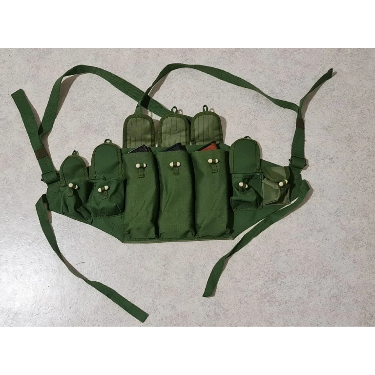Equip yourself with the Type 56 Chicom Chest Rig, crafted from robust terylene for year-round performance. This waterproof rig features seven pouches, ensuring ample storage for your essentials. Ideal for outdoor enthusiasts and professionals, its green color blends seamlessly into natural environments, offering both functionality and style in any terrain.