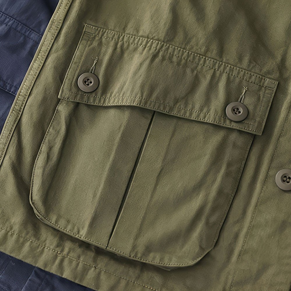 This vintage M43 field jacket is ideal for casual outings in spring and autumn. Made from 100% cotton with a herringbone pattern, it offers moderate thickness and features four flap pockets for practicality. Available in dark blue and army green, it combines military style with retro streetwear appeal.