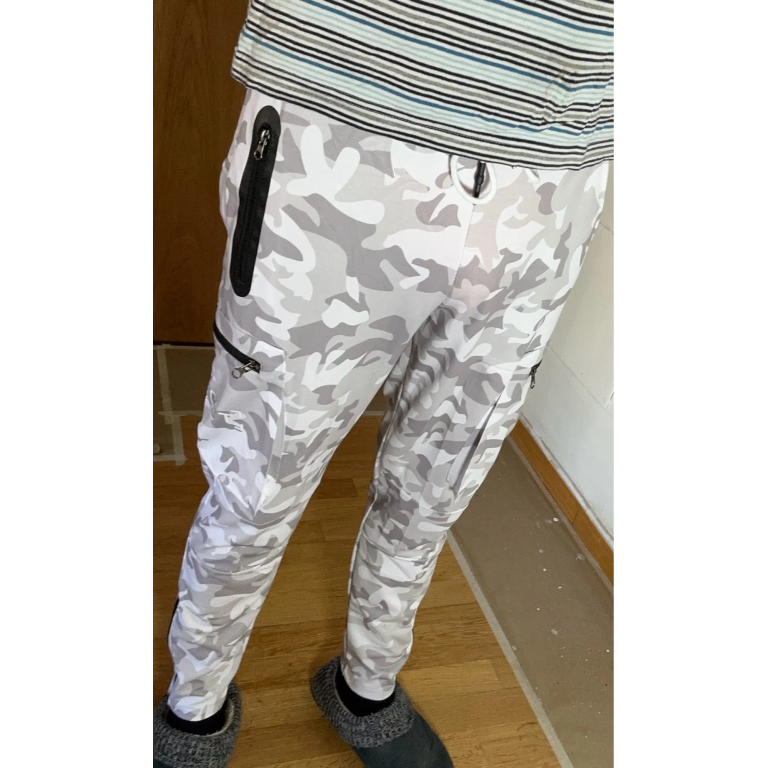 Slide into a world of comfort and style with our white camo sweatpants. Inspired by the serene beauty of snow-covered terrains, they’re a chic addition to any outfit.
