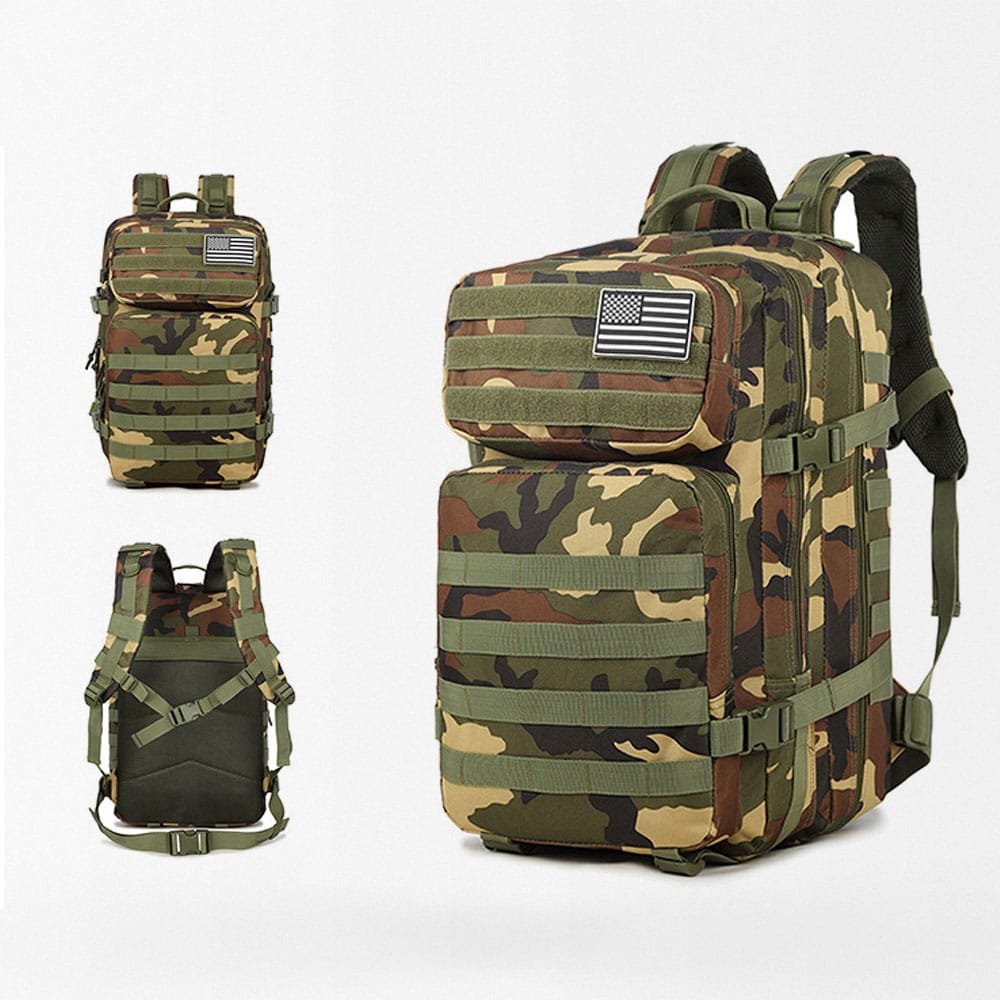 The Woodland Camo Backpack 45L is designed for those who demand reliability and stealth in the field. Made from durable polyester, this backpack offers ample space for gear while blending seamlessly into forest environments. Ideal for hiking, camping, or tactical missions, its robust construction ensures your essentials are protected in any terrain.